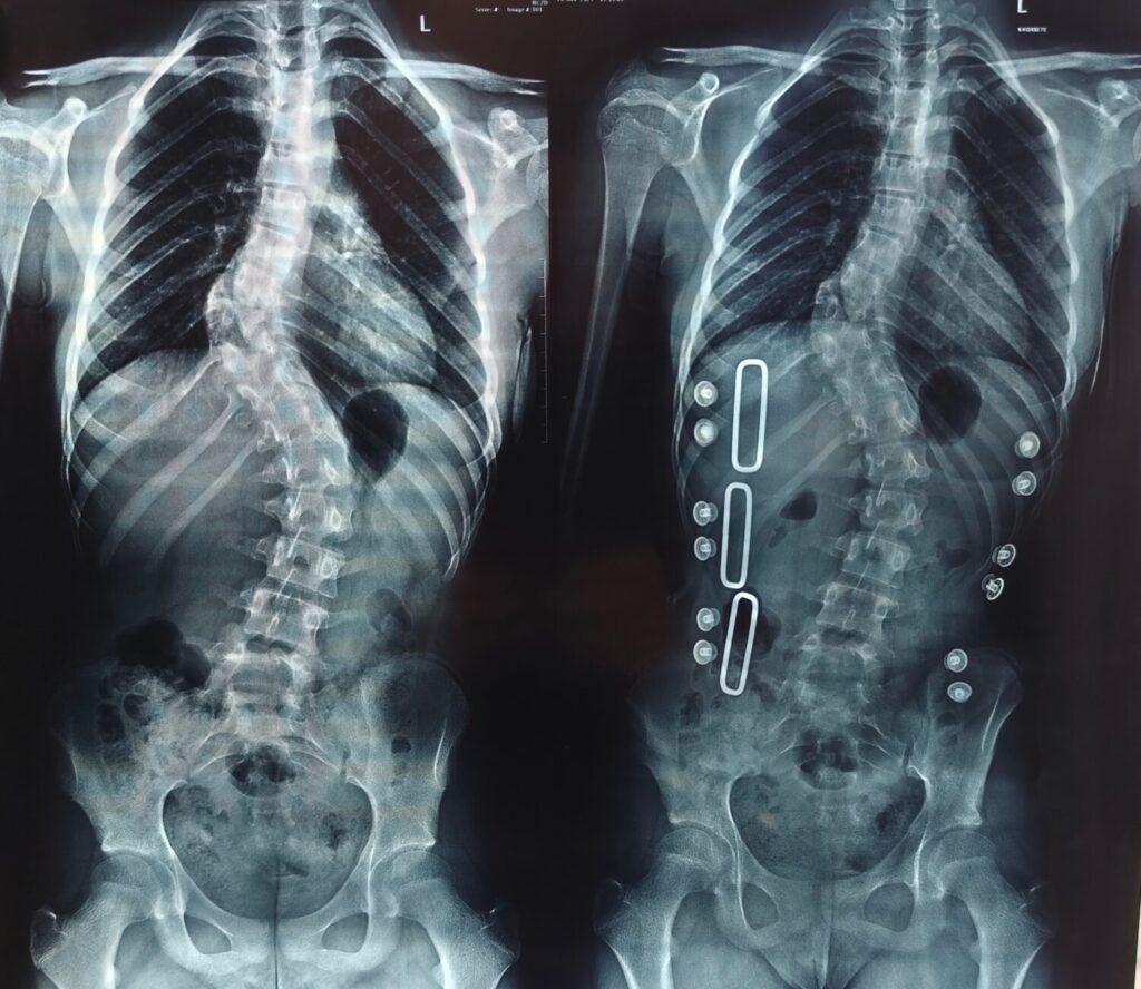 Недавно девочка опять была на приеме у врача, и ей снова сделали рентген. Результат изменений за год очень тревожный — искривление увеличилось на семь градусов. Это много — обычно сколиоз не прогрессирует так быстро. Надиря говорит: «Врач посмотрел наши результаты и сказал: "Корсет и зарядка не помогают, мучить девочку нет смысла, нужна операция. Срочно"».