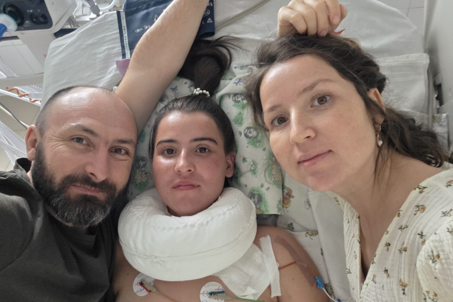 Диагноз, поставленный в больнице, звучал так: «закрытая черепно-мозговая травма, ушиб спинного мозга, компрессионный перелом, нестабильность позвоночника, смещение отломков, паралич ноги». Девушка была в очень тяжелом состоянии, и срочная операция спасла ее жизнь. Врачи смогли убрать обломки, скрепив шейные позвонки титановой пластиной. «А потом началась наша борьба, — говорит Рустам. — Полтора месяца Рокси провела в реанимации, и мы учились всему заново. Через боль и слезы. Тогда я понял какая у меня сильная дочь».