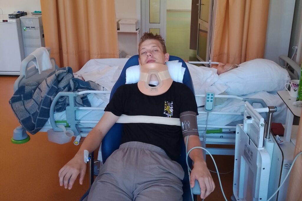 Когда приехала скорая, Николая доставили в больницу Славгорода. МРТ показала перелом шейных позвонков и ушиб спинного мозга. Уже на следующее утро Николая срочно перевезли в краевую больницу, в город Барнаул, где провели операцию — раздробленные части позвонков удалили, соединив позвонки металлоконструкцией.