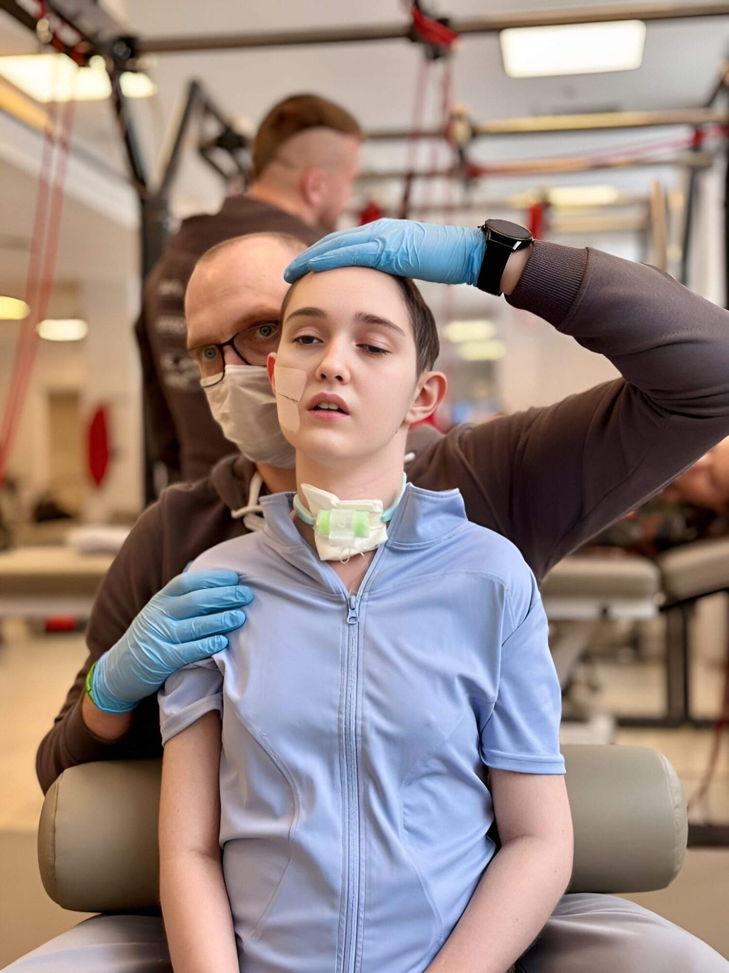 За 3 месяца непрерывных занятий Ева вышла в малое сознание со знаком плюс. Она уже может глотать протертую пищу и пить, учится дышать с установленной в трахеостому заглушкой. Реагирует на любимую музыку и видео от подруг. Начала улыбаться, у нее полностью заработала левая рука. Правая еще слабая, но девочка уже пытается ее сгибать. Не так давно, следуя инструкциям реабилитологов, девочка научилась переворачиваться на бок. Следующая цель - научиться держать голову.
