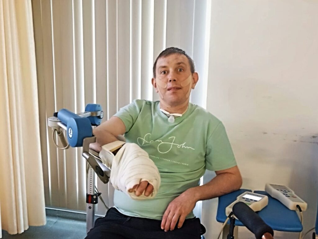 Выйдя из комы, Игорь еще месяц находился в вегетативном состоянии. Просто лежал с открытыми глазами и отсутствующим взглядом, непроизвольно подергивая руками и ногами. Дышал через трахеостому, питался через гастростому. Такого тяжелого пациента никто не хотел брать на реабилитацию — ни по ОМС, ни платно. После долгой борьбы с чиновниками родителям удалось устроить сына в бесплатный реабилитационный центр.